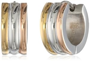 This item: Stainless Steel Three Tone 18 Karat Gold and 18k Rose Gold Plated Huggies Earrings