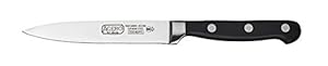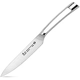 Great knife for the price. Heavy German steel, razor sharp. The equal of knives that cost fives time as much.