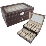 • Watch Box Large 12 Mens Black Leather Display Glass Top Jewelry Case Organizer