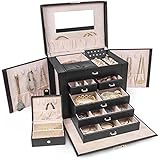 • Watch Box 6 Mens Black Leather Display Glass Top Jewelry Case Organizer
