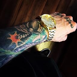 This watch looks amazing in real life, even more so than the picture. I've tried many different kinds of gold watches and this one seems to stand out the most. The color is perfect, the weight is on point and it seems like a very well made watch.