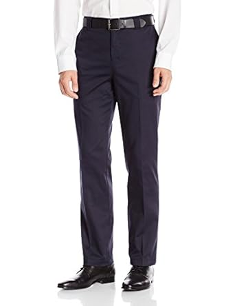 Young men's narrow leg pant has a contemporary fit that is 2 inches narrower thru the leg than our traditional flat front. Slimmer leg without being tight, the narrow leg pant is made from stretch twill with spandex for comfort and fit. Button-thru closure waist has 5 wide belt loops, and sits lower on the hip.