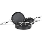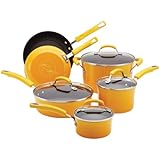 I have been using this exact set for more then 4 years now. I first purchased the RACHEL RAY'S hard enamel set. They are nice & clean up was okay. I wanted another cookware set to fill my hanging birchwood pot racks . Flipping through a catalog I order from regularly, I saw this set. I purchased it .