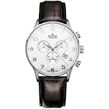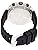 • Round watch featuring corrugated bezel with black top ring, stick/Arabic indices, and two chronograph subdials