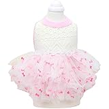 • White costume wedding dress for dog with lacy veil headpiece