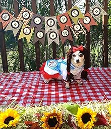 This is a cute costume and while it isn't well made, it suited my needs. I went to the local fabric store, bought more red lace and added two more rows along the bottom of the dress (because it didn't hang right). There were 3 red bows sloppily hot glued to the back so I embellished them with decorative rhinestone flat backs to cover the 'slop'. The 'shoes' aren't shoes but pieces that velcro around your pups leg and are open on the bottom. Either way, I wouldn't have attempted to use these (nor would they have looked right on my pup). I used Glitter Red ribbon and added it to the sleeve cuff to add a little glitter to her paw area. The bow is HUGE, didn't use it either. Instead, made a yarn wig (she actually didn't mind it!) and added a homemade bow to that. I only use the costumes for photos so it worked out well for us. We think she looked darling. Although, she looks more like American Gothic meets Oz! LOL! :)