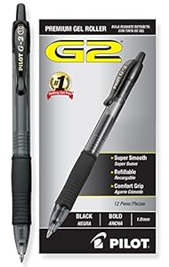 This item: Pilot G2 Retractable Premium Gel Ink Roller Ball Pens, Bold Point, Black Ink, Dozen Box (31256)