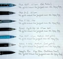 These pens don't require a scribble to start the ink (or to restart it when you pause for a thought), they never skip, they never get ink globs around the point (a common pitfall for gel-ink pens, and fine-point pens in general), and they always write a smooth, clean line. I've even found they will write upside-down, like the Fisher Space Pen does, so they're also great when a wall is your only flat surface to jot a quick note!