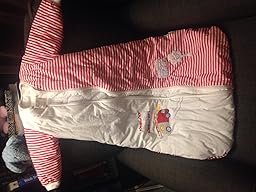 • Winter baby sleeping bag approx. 3.5 Tog with long sleeves made with red/white 100% cotton sheeting featuring Fire Engine embroidery. Suitable for room temperatures below 59 °F . Arms are padded slightly less to allow for unrestricted arm movement. Arms are NOT removable.