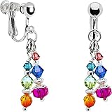 • Silver Crystal 2 Layer Teardrop Pear Shape Dangle Clip Earrings Tipped with Upside Down Teardrop Shape