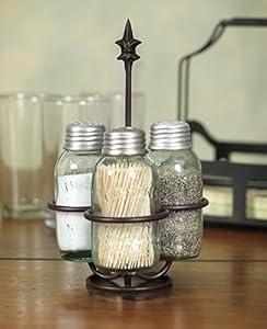 This item: Colonial Tin Works Fleur de Lis Mason Jar Salt, Pepper and Toothpick Caddy