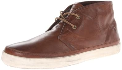 Redefine "relaxation" in the Frye Gavin Chukka boot. Kicking your high-top look up a notch, this men's casual boot is offered in burnished, vintage leather with a two-eye lace-up front for a classic, simple silhouette. A leather-covered, cushioned footbed provides moisture-wicking interior comfort atop the flexible rubber sole.