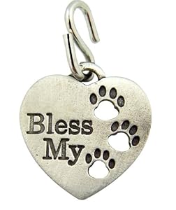 Bless My Pet 1 Inch Pewter Paw Print Heart Dog Cat Collar Charm