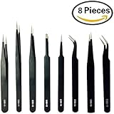 • Marrywindix Tweezers Non-magnetic Forceps Anti-static Black Pack of 6pcs