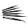 This is not the product displayed witch looks like it has six different tweezers. I received 5 that seem to be the same and one straight one. I am not disappointed in their quality since they were $2.05 at the time of purchase. However, the picture displayed is not what I received. 0 stars for lies.