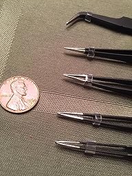 I use these tweezers when working with photoetched brass parts for model airplanes. First off, he price is right for these puppies. I was sick of constantly ruining the tips of my expensive laboratory grade stainless tweezers with CA glue, so I purchased these as a sort of disposable option. They work fine for the most part, but suffer from one major, albeit understandable, shortcoming. The tweezers are made from a metal which isn't stainless, or even tool-grade steel. Putting excessive pressure on the tips can easily cause them to suddenly criss-cross. Also, the anti-static coating seems to be cheap black acrylic paint, so I wouldn't recommend them to microelectronics enthusiasts. Basically, the cost is low, the performance is low. If you're buying tweezers for occasional use (replacing watch batteries, eyeglass repair) they'll serve you well.
