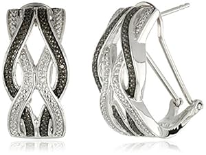 This item: Sterling Silver White and Black Diamond Intercrossed Omega Back Earrings