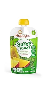 * HAPPYTOT Spinach, mango & pear, NET WT. 4.22 OZ. (120g), UPC 8 52697 00129 3;