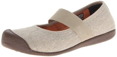 • Crisp, linen-like fabric encases the simple mary-jane silhouette of this cork-contoured flat by KEEN.