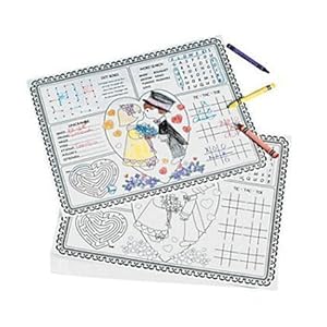 • Covered with fun activities, these place mats are a must-have for rehearsal dinners and wedding receptions