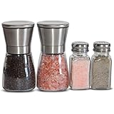 These are some classy salt and pepper grinders. They look great on our table. These have a few drawbacks. First, the user does not have the ability to adjust how coarse the grind is. Also, you do not have the ability to adjust how much salt or pepper. You only get a pumps worth. All in all, these are great.