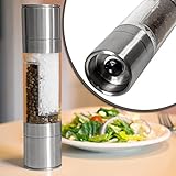 First used the pepper and salt mill at the Equinox in Manchester Vermont. Was so impressed I bought them to use at home and have give them as gifts. They are well made and dole out a portion of pepper (or salt), all with one hand.