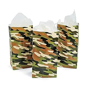 24 Paper Camo Bags - Camouflage Goody Party Favor Treat or Lunch Bags - Bulk Pack (2 Dozen)