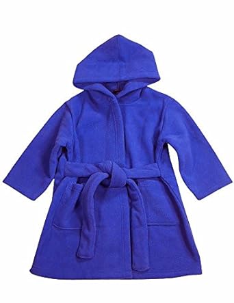WXY - Toddler Boys Hooded Fleece Robe, Royal, Attached Tie Belt, Patch Pockets, 100% Polyester, Made in China, #32618 32-618
