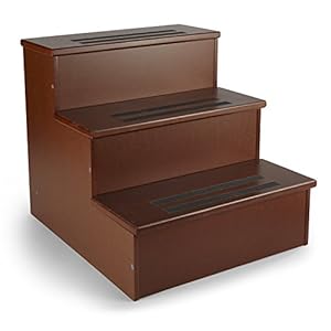 The description states that it is "made of solid wood." That is a lie. It is made out of a composite material with a consistency between particle board and cardboard. It looks nothing like the picture. The pictures shows the grain of the wood and beaded groves. This false advertising leads the consumer to believe the steps have the strength and feel of real wood. The actual product has a solid coat of paint over its thin particle board pieces. The steps violently slip out of place if a dog tries to use them on hardwood. This was by far the worst purchase I have ever made on Amazon. I was out of the country for several months and missed the deadline to return this item.