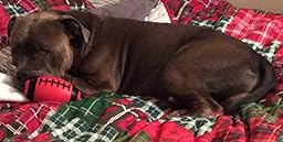 This is a great, durable toy. My 150 pound English Mastiff (Gus) is in love with this toy. He will pace around the yard or basement if he can’t find it right away. Then he starts to whine and carry on like he’s lost his best friend. I can pull out a number of other toys but he’ll turn his nose up at them until I find his football. Once we find it he goes into retriever mode and wants me to toss it all around the back yard so he can bring it back to me and throw it again. My Black Lab isn’t as ball obsessed as my big guy! Love this toy; had to buy several to make sure I could always find one for Gus.