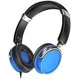 • AUSDOM Lightweght wire Over-Ear HD stereo headset Soft leather ear cups with In-line Mic - Blue