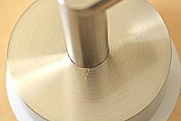 When I first opened the package, I was surprised by the size of the hook. The base is just slightly smaller diameter than a Campbells Soup can, and the hook sticks out about 2.5" from the wall. It weights in at a hefty 6 ounces. Although the description claims this is stainless steel, all appearances point to brushed nickel - especially the copper that's peeking out around the base of the hook (nickel finish is accomplished by first plating the base metal with copper, then nickel), stainless steel isn't a surface plating, so no other metals would show through if this were truly stainless.