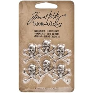 • Adornments for Arts and Crafts by Tim Holtz Idea-ology, Crossbones, 6-Pieces, 0.75 x 0.75 Inches Each, Antique Nickel, TH93089