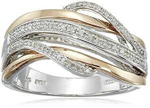• Sterling Silver and 14k Rose Gold Interwoven Diamond (.15cttw, I-J Color, I2-I3 Clarity) Ring, Size 7