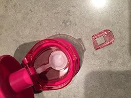 Now the cap is where this thing shines, though. For starters, there's a handle built right into it. It snaps into place (and looks neat) when you don't need it, but it snaps out easily and seems pretty sturdy whenever you DO need it. Nice. Then the lid itself snaps closed securely, and even has a ridge to "lock" into place for when you're drinking. That last bit is important, because I didn't notice it right away and was a bit annoyed that the lid kept flopping onto me while I was drinking. Then I caught the little ridge and pushed the lid beyond the ridge and... Pop! It was kept neatly out of place. Spiffy. There was also a rubber stopper in the lid that I found odd. I wondered what it was for, then noticed a tiny hole NEXT to the spout on the inside of the cap. A-ha! It's an air hole.
