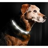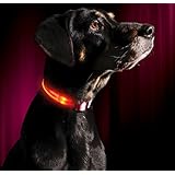 Just what I hoped for in a glow in the dark collar! Previous collar that I ordered was made out of a very hard, stiff material and I took it off my dog immediately because I could tell he was uncomfortable, but this one is just like a nylon collar with an excellent glow feature. It is just right for my all-black little dog and now I can see him in the dark in the middle of the night. He goes outside during the day for just a little bit and it is enough for the glow to last all night. I am going to order another one because there is nothing else that beats this on the market.