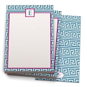 Blue and Hot Pink 'Greek' Note Pad with 'E' Monogram. 24 Luxe Cover Stock Sheets per set. 2-pack.