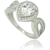 • Platinum-Plated Sterling Silver and Swarovski Zirconia Flower Halo Ring Set