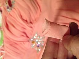 I really like this dress. I ordered the Grey my only complaint is the picture shows a grey dress with grey rhinestones. However they are a iridescent pinkish color. Still very pretty so it deserved 4 stars for sure. I was worried it would be cheaply made but however it was pretty sturdy. Sadly it was too small for me. I fit a 8 in dress normally but I have reordered this in a 12. Luckily it does have a corset back and you can easily tie it tighter so i would order at least a size if not to bigger.. I included pictures. One appears pink but its just crappy lighting.