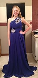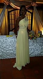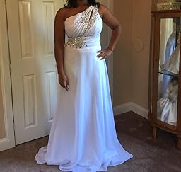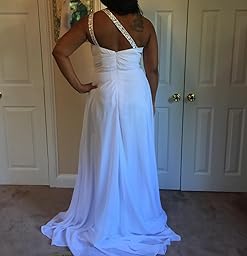 One-shoulder and Gorgeous design makes the dress appropriate for a wedding, a formal evening party, or other occasions. High quality chiffon gives you comfortable feeling! Please be aware that this is a small trailing gown, not suitable for dancing.