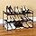 Once it's put together, it's actually a decent rack. I wear a size 10 and 3 pairs of shoes fit across each tier - albeit rather snugly. For example, on the top shelf I have two pairs of running shoes and one pair of hiking boots, and I have to have the middle pair facing the opposite direction in order for all 3 pairs to fit.