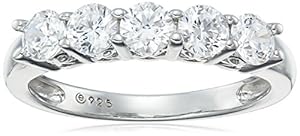 Platinum-Plated Sterling Silver and Swarovski Zirconia Five-Stone Ring (1.25 cttw)