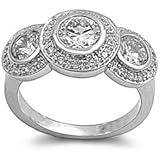 • Sterling Silver Round Cut Three-Stone Cubic Zirconia Ring (2.3 cttw)