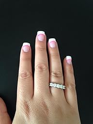 I don't even know when to start. This ring is ABSOLUTELY gorgeous. I bought this ring in January (2015) and it is now May (2015) and I am still as in love with this run as when I first opened the box the first time. This ring has CRAZY sparkle in the light. I get compliments ALL the time on how beautiful it is. I never take it off (even when I shower, put on lotion, etc.) and it's still in very good condition. It has never turned my finger any funky colors or lost its silver coloring. This ring came on time and was worth EVERY penny. I ordered a size 6 which is what I usually wear and it was true to size (not too tight like some rings are). Look no further, this is your ring.