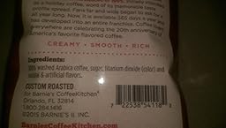 I've always enjoyed a cup of this at my local Barnie's, so I was more than ecstatic when I found it at my grocery store. Upon opening the bag, I noticed the color was a bit strange and promptly looked at the ingredients. This coffee is colored with titanium dioxide. It's what makes white paint white, used as a sunblock and more recently was removed from Dunkin Donuts' powdered sugar. It's used as a whitener in many foods, cosmetics, etc, etc. (Google it)