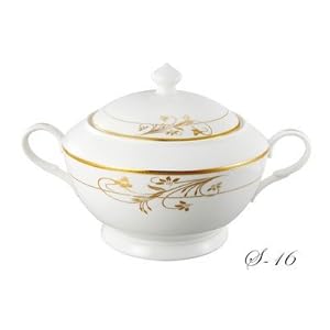 Lorenzo Import La Luna Collection Bone China Souptureen with Lid, Rosalia Pattern by Lorren Home Trends, Gold