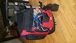 All the features that made one purchase are well designed: white inside contrasts sought items well, lots of pockets and storage, wet suit compartment, bike pump straps and the simple but effective center top strap to wrap around the bike rack/tree/what have your for bag setup.
