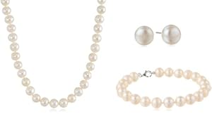 This item: Sterling Silver White Freshwater Cultured Pearl Necklace, Bracelet and Earrings Jewelry Set (7-8mm)