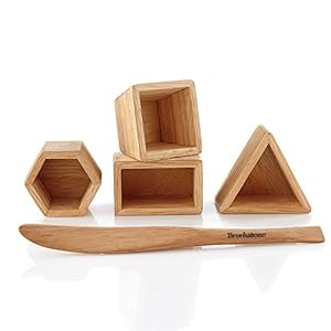 These are wooden molds in rather boring geometric shapes. The quality of the wood is nice enough, I suppose, but I think it would be more fun to give the kinetic sand with beach or sand table molds. I regret buying this set to go with my children's kinetic sand when a drugstore beach bucket would have served as well or better.