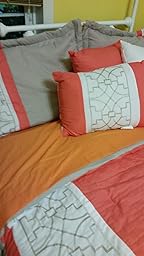 Lovely sheet. They coordinate but don't really match the comforter promoted with...I like the vibrant orange. Theyre on our guest bed, and perhaps a little thin but I think they'll be just fine.